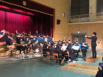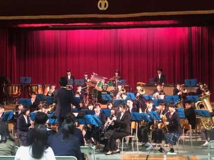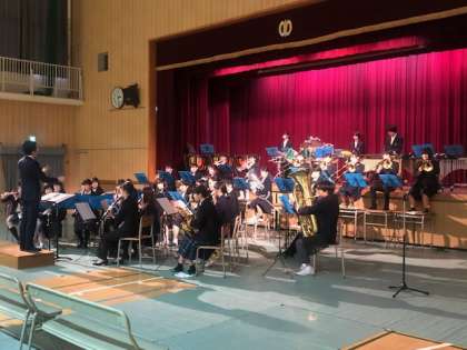 曲は、「マーチワンダフル・ヴォヤージュ」「ジャパニズ・グラヒィティX ?-嵐メドレー」「J-BEST-桜ソングメドレー」心地いい音色が体育館に響きわたり、本当に楽しく過ごせました。最後に、アンコール「ディズニーのメドレー」で締めくくりました。