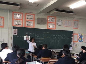 2年生の英語の様子です。「Who is 〜?」の復習で、アイドルや歌手が出てきました。身近な話題が教材になると分かりやすいですね。