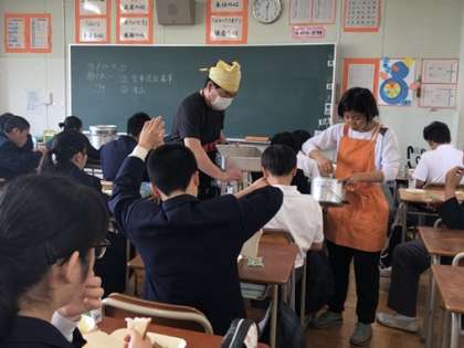今日も美味しくいただきました。どのクラスも手が上がっていますね。先生たちも張り切って配膳しています。