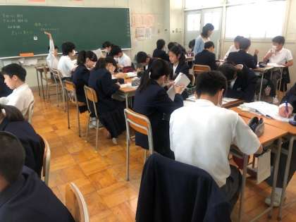 2年生の理科の授業での様子です。グループで教え合い・学び合っている様子です。