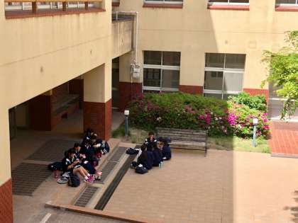 明日の春季総体本戦に向け、朝から練習試合で張り切っています。いまはお昼ご飯の時間です。