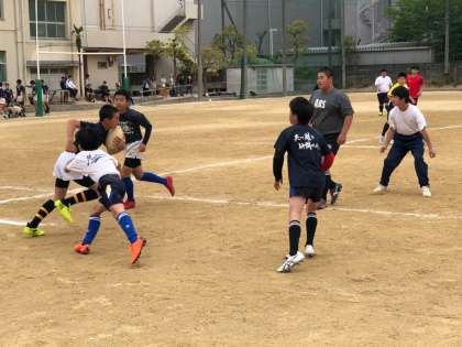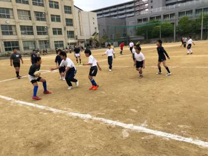 喜連中学校での1年生タッチフットボール大会の様子です。新しいスパイクを履いて、一生懸命走ってます。