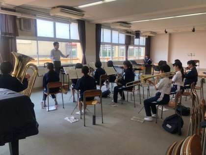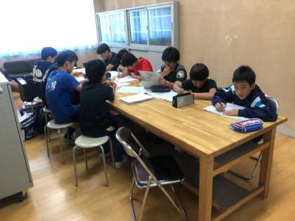 サッカー部は大和川中学校と住吉中学校とで合同練習です。吹奏楽部はパート練習後の合わせている様子です。最後のラグビー部は、練習後に連休中の宿題をしていました。部活動にも勉強にもしっかり取組めています。なかなか感心しました。