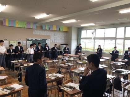 今日は「樹齢七千年の杉」という資料を学びました。屋久島にある幹回り16.4mの縄文杉について、2年3組では福井先生が16.4mの紐を用意していて、どれくらいの大きさなのかを円になって考えていました。