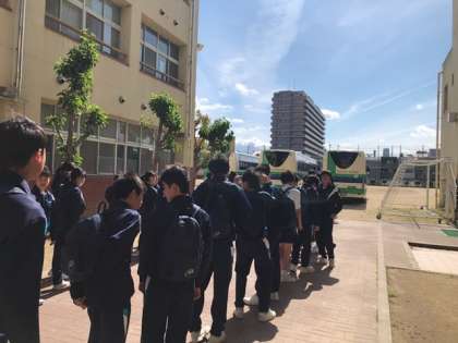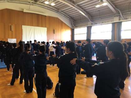 グラウンド状況が良くなかったので、格技室で集合して、諸注意のあと、バスが出発しました。