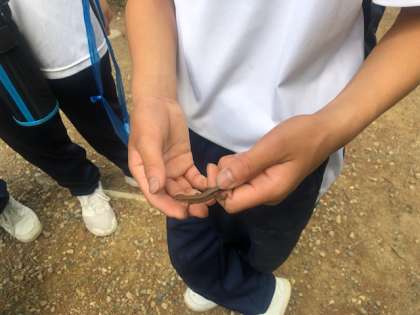トカゲがいました。いっぱい自然体験してほしいです。
