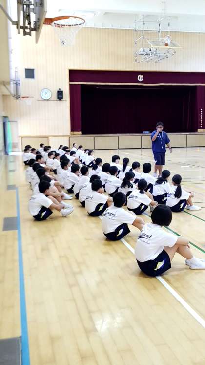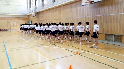 体育大会に向けて、体育の時間に行進の練習を頑張っています。曲に合わせて足をそろえようと一生懸命です。