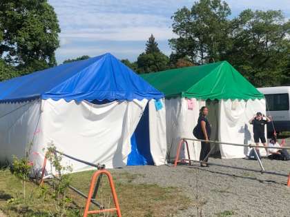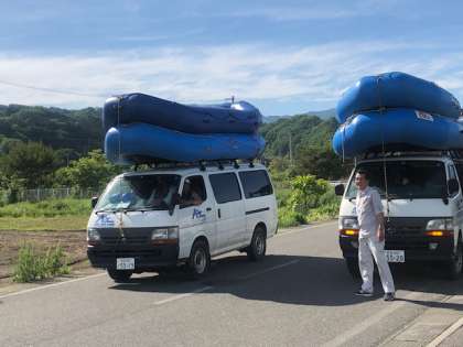 ボートは車で運び、生徒たちはテントで着替えて、バスに乗ります。ラフティングのスタッフの皆様、すばらしい体験をありがとうございました。