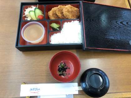 最後お食事、飯田市の山都飯田です。先程の渓流釣りの魚は、アマゴです。今からソースかつ丼を食べ、おみやげを買います。