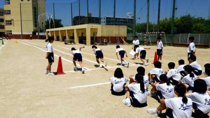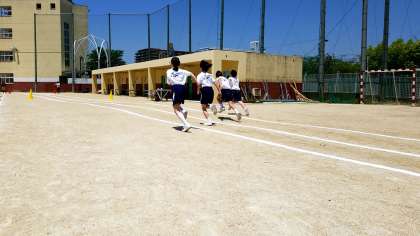 本日、全クラスで50m走のタイムをはかりました。給食の時間も記録について楽しそうに話していました。