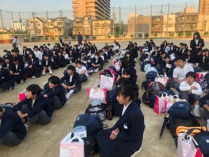 修学旅行の解散式をしました。本当にいい修学旅行に生徒皆さんが創ってくれました。これからもここは我慢をして切り替える場面があります。この修学旅行で出した底力を中間テストやチャレンジテストでも出してください。
