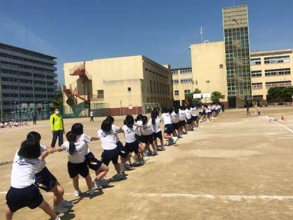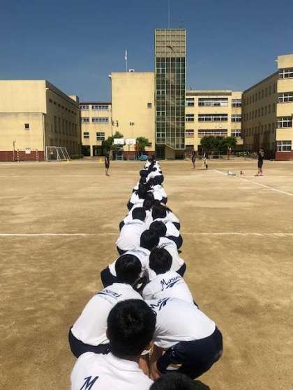 陽射しが眩しい朝日の中、熱い戦いが繰り広げられました。先生の指示に瞬時に反応して、さすが3年生だなと感心しました。結果、1組と2組が体育大会当日に対戦します。応援よろしくお願いします。