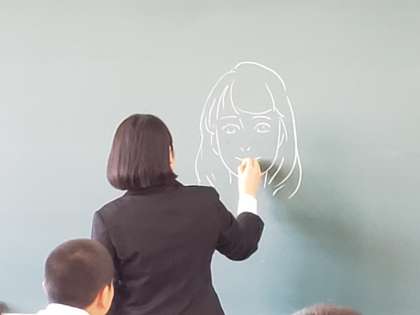 1年1組に今日から教育実習の先生が来てくださっています。1時間目に自己紹介をしていただき、生徒からの質問も優しく答えてくださりました。美術の先生なので、1年1組担任の兼廣先生の似顔絵も披露してくださいました。これから2週間よろしくお願いいたします。