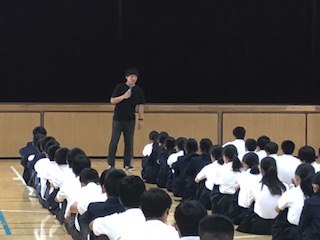 また、学年主任の大西先生からは、「校舎や教室のものを大切に扱っていますか?」と問いかけがあり、これまで先輩たちが大切にしてきた学校を、また何十年と先の後輩へ受け継ぐためにも守っていってほしいという、お願いをしました。