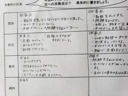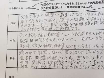 1年テスト反省