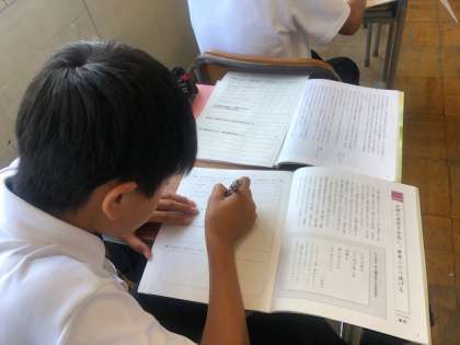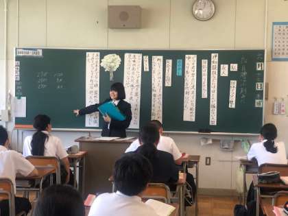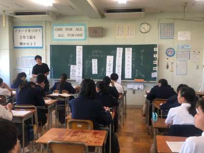 1年生は「目標は小刻みに」2年生は「燃え盛る炎」の内容でした。自分の考えを自信を持って発言していました。いろいろな考え方があることをみんなで共有していました。