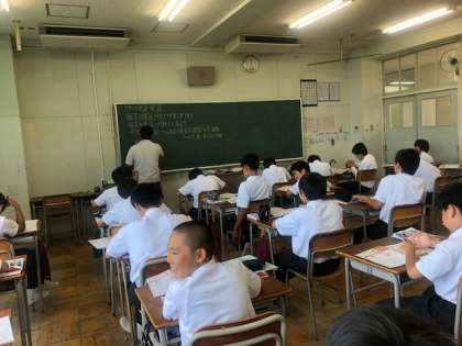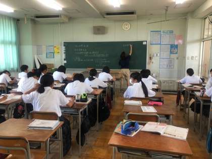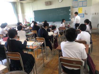 1年生の男子体育、女子体育で、体育の先生が教室で授業をする一場面です。楽しそうです。英語はテスト範囲に頑張って取組んでいました。