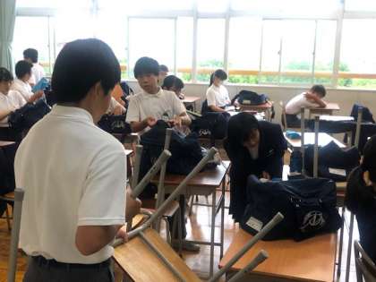 G20明けの月曜日です。生徒たちは元気に登校しています。朝からワックスがけで廊下に出しいた机いすをいれていました。そのあと、3年生は、これからの進路のスケジュールについて、全員で学習していました。