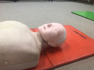 呼吸の確認方法、AEDの使い方などを、VTRで学んだ後、実技講習を受けます。