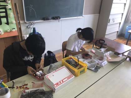 生徒会のメンバーで、プログラミングロボットの組み立てをしました。
