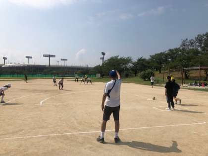 住之江区青少年指導員連絡協議会主催の第43回中学生キックベースボール大会が南港中央公園で開催されました。猛暑の中、歴史ある大会が青少年指導員さんのもと実施され、生徒たちが元気に頑張る姿を見て、このつながりがずっと続いて、地域の中でお互いを支え合うネットワークになってくれると感じました。