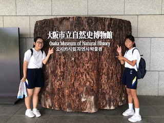 1・2年生を対象に、大阪市立自然史博物館へ課外学習に来ています。事前学習したことを確認したり、ゲームで学んだりします。