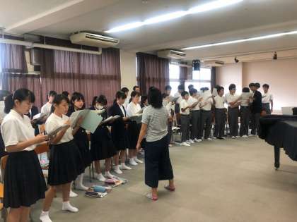 音楽は美しい歌声で合唱練習、国語は万葉集、理科は加速度運動を勉強しまています。