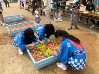 コイン落とし、スーパーボールすくい、ローラーローラーです。いい笑顔です