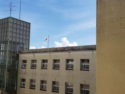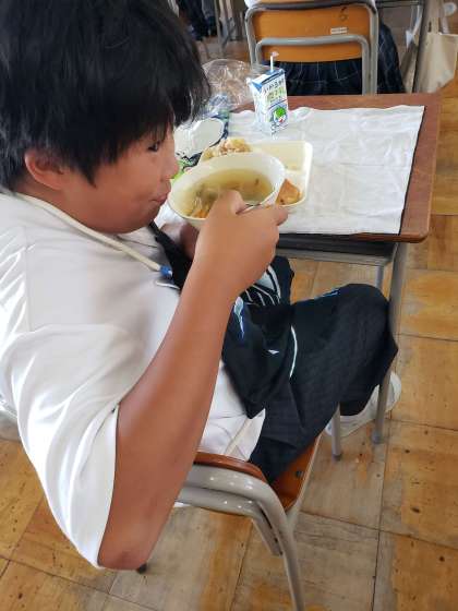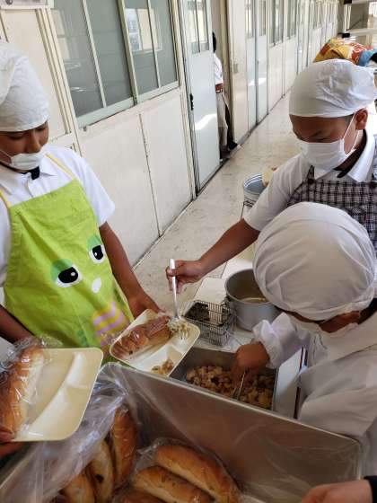 給食の準備の時間、外の雲を見て「犬!!」「象じゃない?」テストの合間の微笑ましい会話でした。みなさんは何に見えますか?給食当番もそうでない人も協力して準備できました。