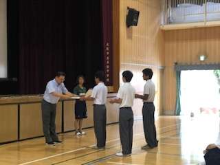 中止になった水泳大会でしたが、体育科の先生方のご配慮で、授業で浮き輪リレーを行いました。結果は、1組が一位、3組が二位、2組が頑張ったで賞でした。2組の賞状が一番豪華です。よくがんばりました。