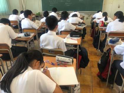 6時限目の1年生の数学と英語はしっかり学習ができています。また、2年生の水泳も背泳をしっかり泳いでいました。真住中学校の生徒たちは本当に頑張っています。すごいです