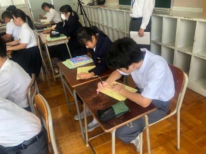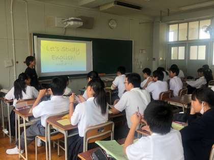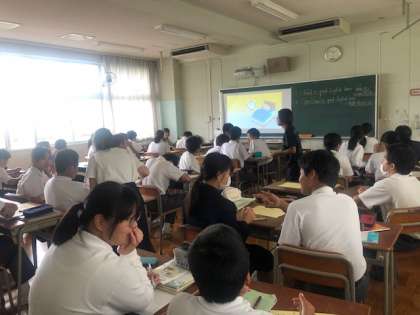 主体的・対話的で深い学びの視点で、教育委員会の方と一緒に研究授業をしました。内容は,have to 動詞の文法〜しなければならないの勉強でした。スクリーンで散らかっている部屋の写真を見せて、生徒たちにあなたは片付けなければならないという英文を自分で考えて作るというような授業でした。元気があって楽しい授業です。毎月研究授業をしています。来月が楽しみです。