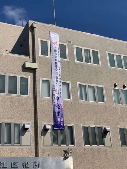 9月20日(金)18時25分ラグビーワールドカップ2019が開会します。(読売テレビ10)昨日住之江区役所に山中選手を応援する懸垂幕が取り付けられました。懸垂幕は住吉川・住之江・清江連合町会の皆様のご厚意より作られました。いよいよ日本代表対ロシア戦、本日19時45分キックオフです。11月2日(土)決勝までワールドカップは続きます。応援よろしくお願いいたします。
