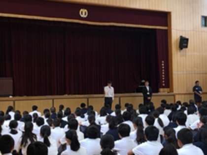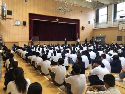 本日より技術科の福井先生の代わりに来られた田中 真人(まこと)先生を生徒たちに紹介しました。