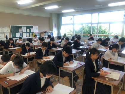 3年生の進路に関わる大切なテストです。生徒たちは真剣にテストに挑んでいました。結果を出てほしいと願っています。