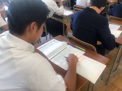 昨日の統一テストに引き続き、3年生は5・6限に英語検定を実施しました。2級・準2級・3級・4級・5級に別れて実施しました。3年生は大切な時期です。これから進路決定をめざして1日1日を大切に過ごしてくれています。本日はお疲れ様でした。