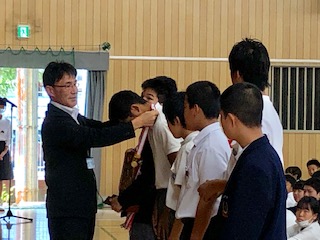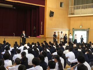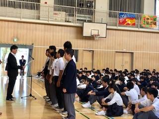 今日は校長先生から“学ぶ姿勢”についてのお話と、相撲大会の表彰、英語スピーチコンテストの表彰がありました。