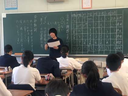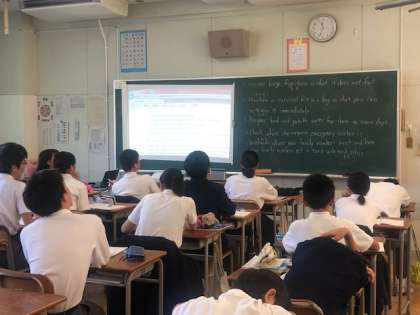 英語は大阪市のホームページの英語版を表示して書いてあることを読み取っていました。理科は水溶液の電気分解の話、国語は文法の内容をわかりやすい説明を受けてしっかり学んでいました。