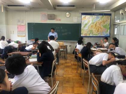 3年理科は水溶液による発電、2年社会は中部地方、1年美術の授業の様子です。どの学年も授業を頑張っています。