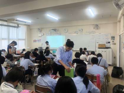 学校行事は生徒が企画運営しています。自主性を重視して英語で数学の授業をしている様子、理科室の様子、最後はSDGs(持続可能な開発目標)に校内で17ゴールに向けて積極的に取り組んでいました。学校が明るく楽しそうな仕掛けがあり、見習うところがたくさんありました。