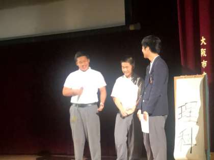 白血球が悪者の菌を倒すドラマです。可愛らしい生徒たちの演技に会場は盛り上がりました。