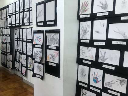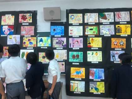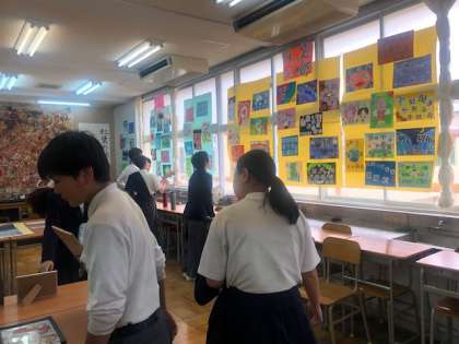 美術科1年妖怪さがし、2年レタリングで自分を、3年ゼンタングルアートです。
