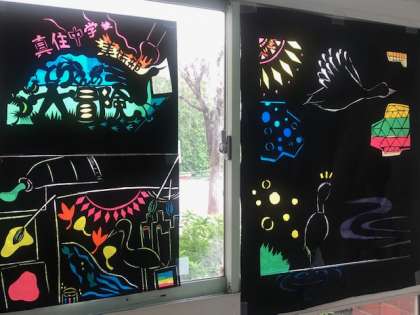 家庭科部「ビーズと刺繍」、美術部「切り絵」、パソコン部「大和川の風景」です。