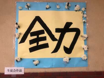 保健美化委員会「生活習慣病について」、PTA成人委員会のメガネケース作り、生徒会の作品「全力」です