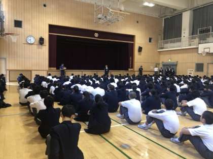 校長先生から、連休中にきた台風19号の影響と、ラグビー日本代表についてのお話がありました。
