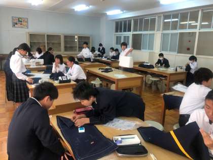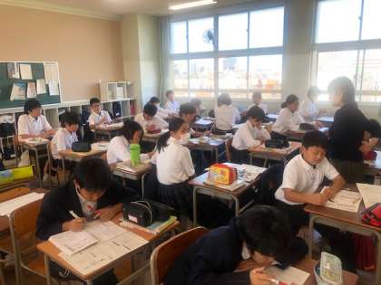 家庭科はファイルカバー作りに取り組んでいます。お互いに協力し合いながら、ミシンを使った作業に仲良く楽しく取り組んでいました。国語は明日のテスト勉強を仲良くしていました。いい感じです。
