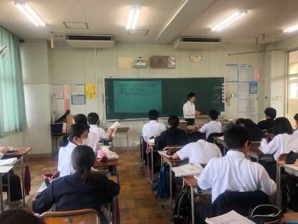 1年生の家庭は被服ミシンかけ、技術は材料加工、英語はデジタル教科書を使った授業でした。