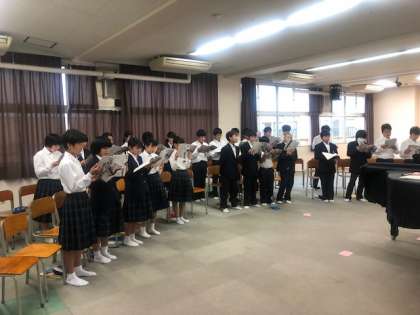 1年生の音楽は、合唱の歌声がとてもきれいで学校中に美しく響き渡っていました。理科は、水溶液の内容をビデオで学習していました。