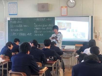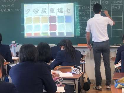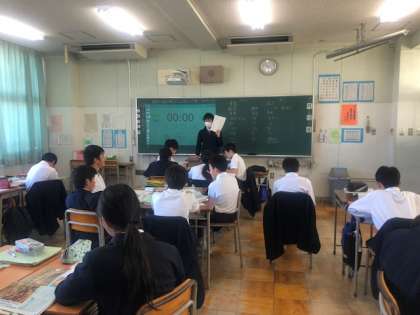 3年社会は裁判員制度の学習、1年社会は歴史で資料の中からグループで読み取っています。3年理科は酸とアルカリでリトマス紙の色の変化の学習でした。