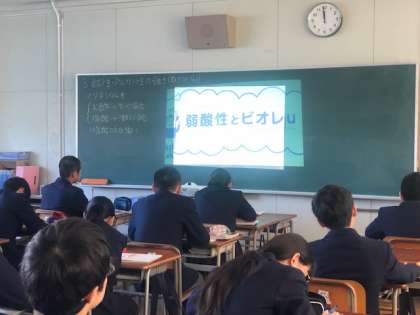 理科は酸性とアルカリ性で弱酸性のビオレUを取り上げてわかりやすい説明を聞いていました。数学は平行線に交わる線の長さ、社会は公民で刑法などの法律の学習をしていました。